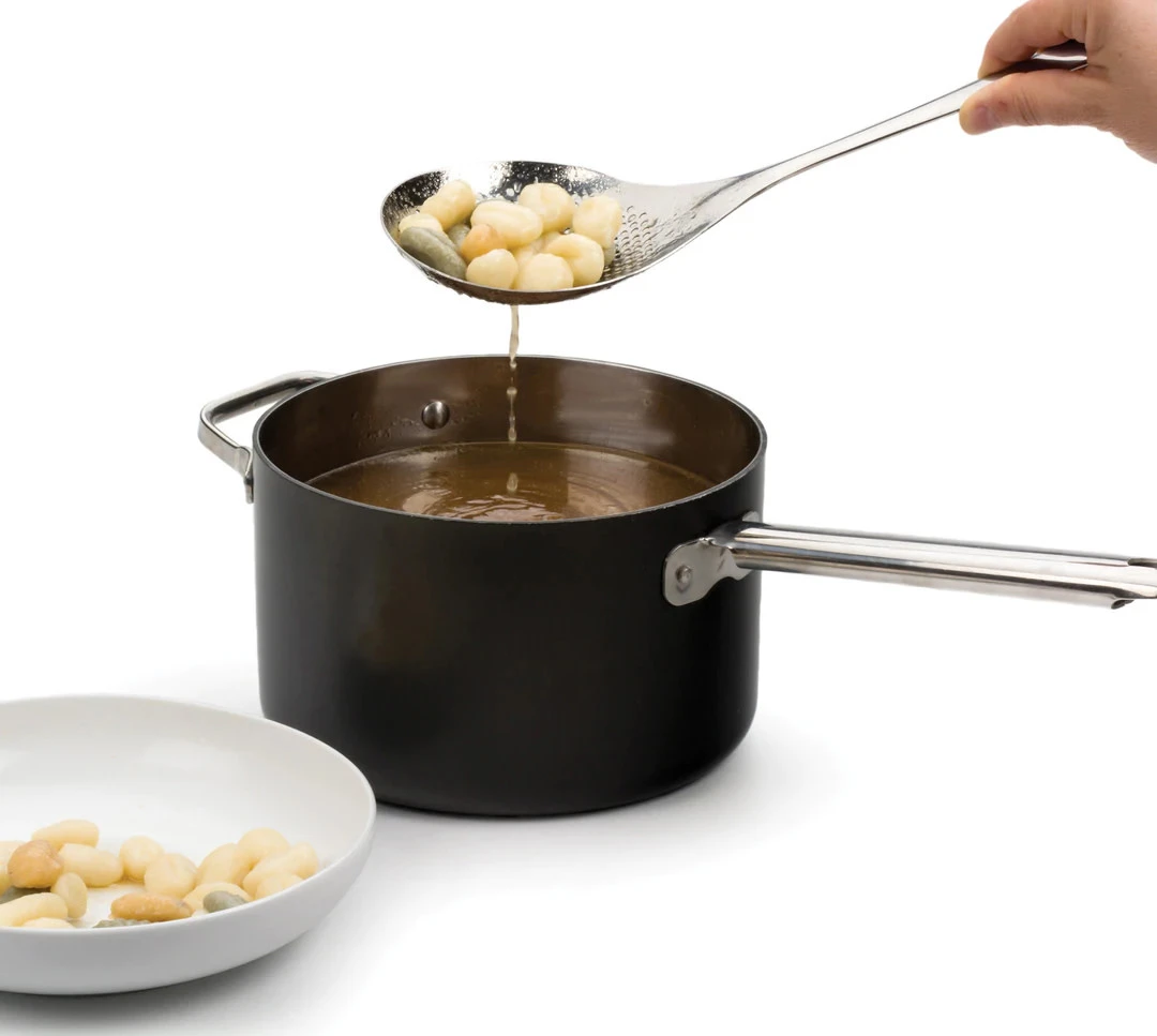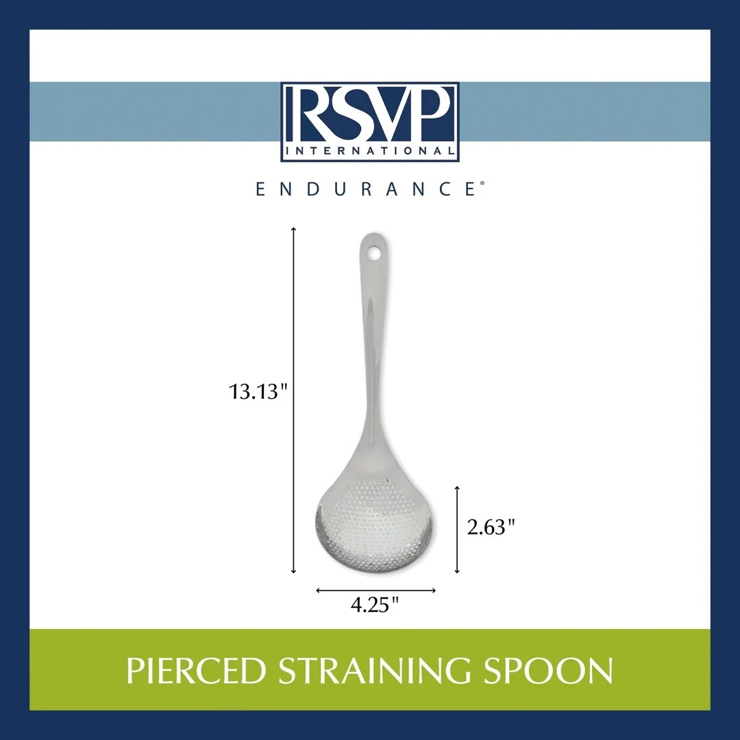 - Perfect for serving, use this perforated spoon to separate solid foods from liquids.