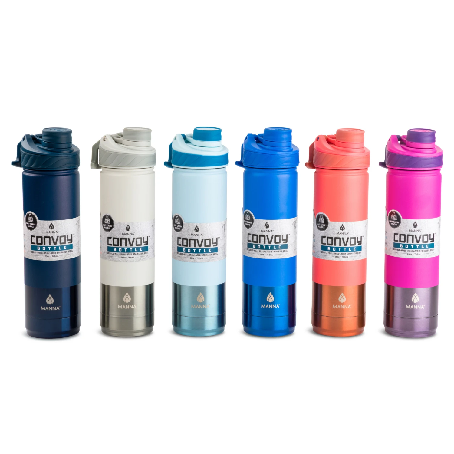 26oz Convoy sports water bottles with a mix of metallic and powder coated finishes.