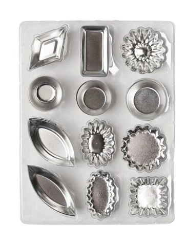 This 72 piece tartlet mold set is perfect for making chocolates, petit fours, and other mini confectionery treats for your special occasions. These tartlet molds are made of tin and come in an assortment of shapes and sizes. Made by Ateco.
