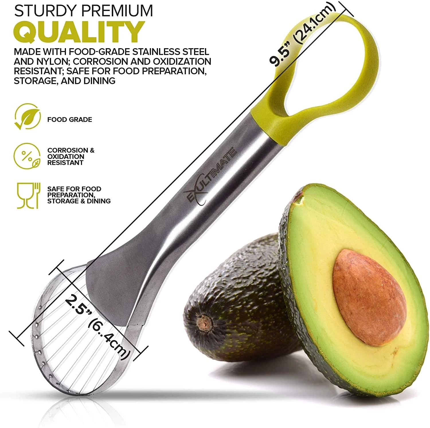 With this avocado slicer/pitter you can now easily pits and slices avocados. The nylon loop end removes the pit without damaging the fruit. The wire end slices and scoops the avocado. Made by AMCO.
