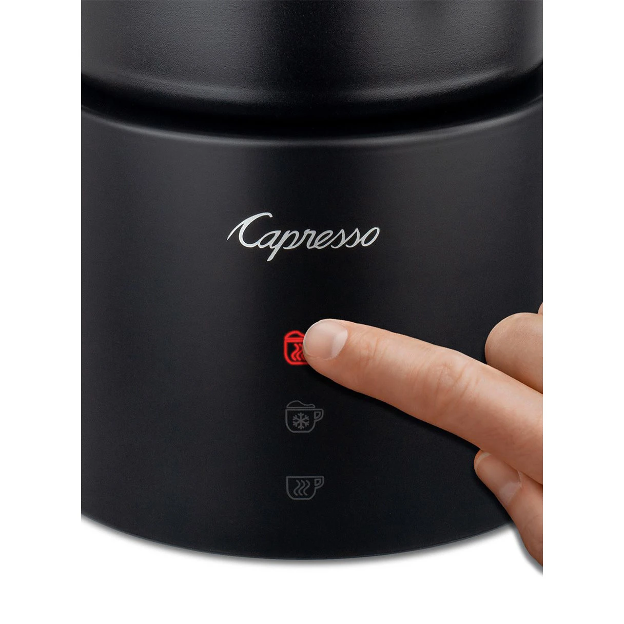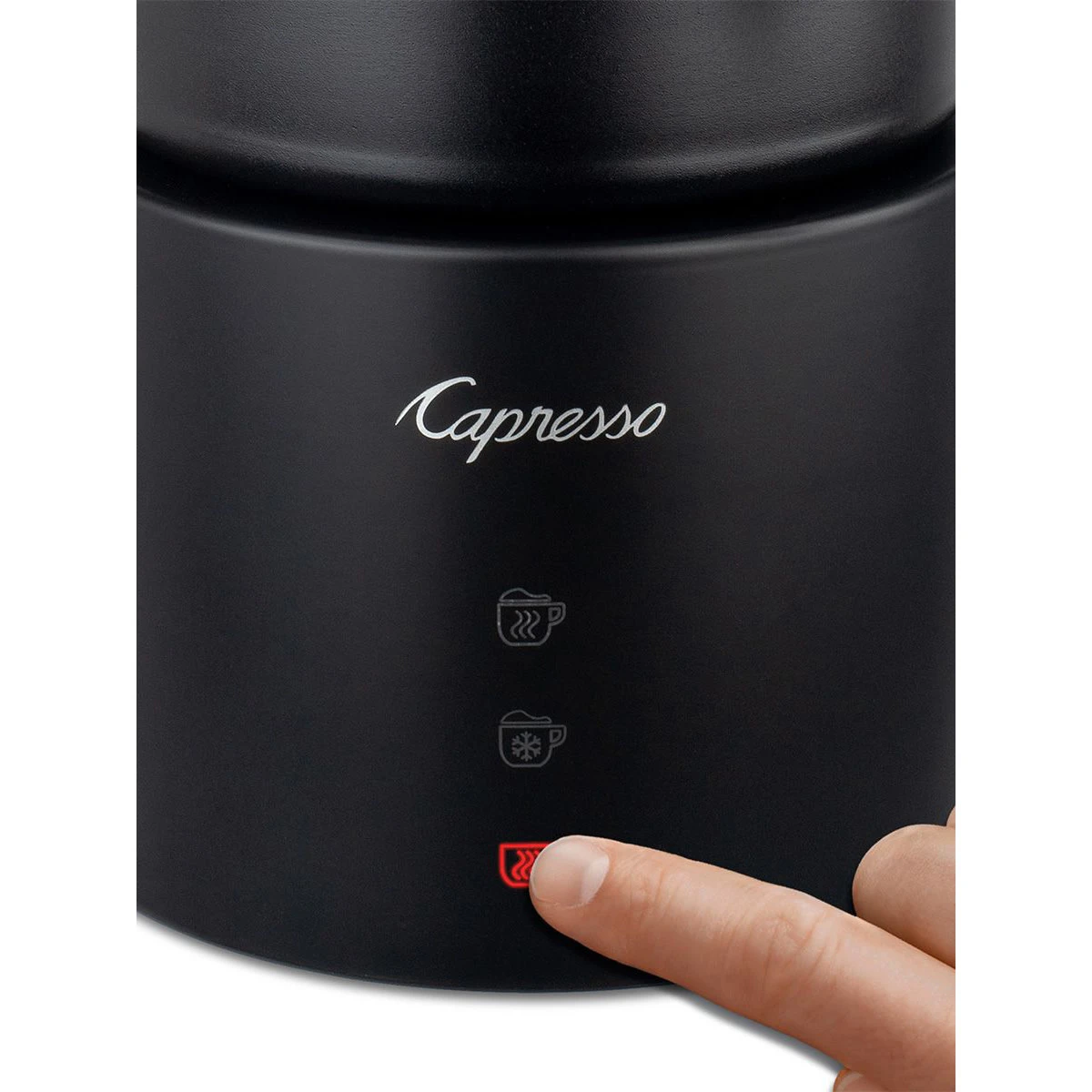 Enjoy decadent hot chocolate any way you want it with the froth TS. This easy-to-use countertop appliance creates rich, frothy hot cocoa using chocolate chips, syrup or powder – made with dairy or non-dairy milk. Capresso’s special hot chocolate function allows the user to add chocolate chips directly into the pitcher. It can also prepare café quality frothed milk for rich cappuccinos, lattes and more. Convenience features include simple one-touch operation with illuminated control and a removeable nonstick coated aluminum milk pitcher with stay-cool handle that is dishwasher safe on the top rack. The froth TS comes with two frothing disks and one heating disk that store securely in the bottom of the base, so they don’t get lost.