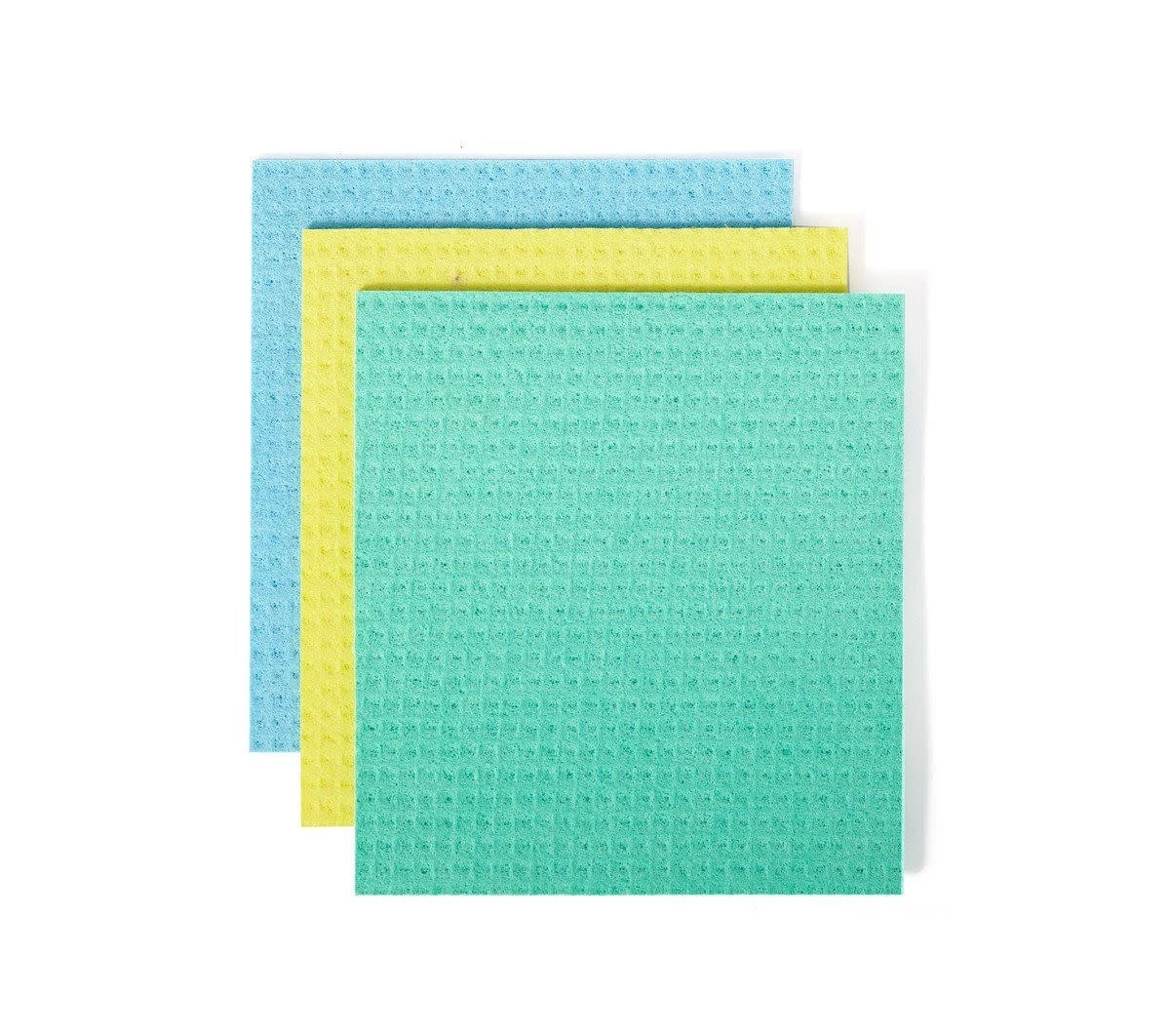 Cellulose squeeze cloths work like a paper towel but can be used again and again for many cleaning jobs. They are super absorbent and 100% biodegradable, this pack includes 3. Made by Full Circle.