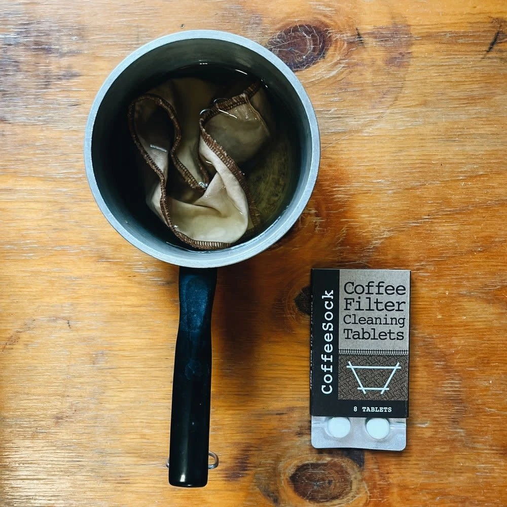 All that is necessary is to simply rinse, reuse, and occasionally boil your filters to remove build up, but for a deeper clean, use these eco-friendly cleaning tablets. Formulated from all-natural, organic, biodegradable and phosphate-free ingredients that eliminates oil buildup in CoffeeSock filters.