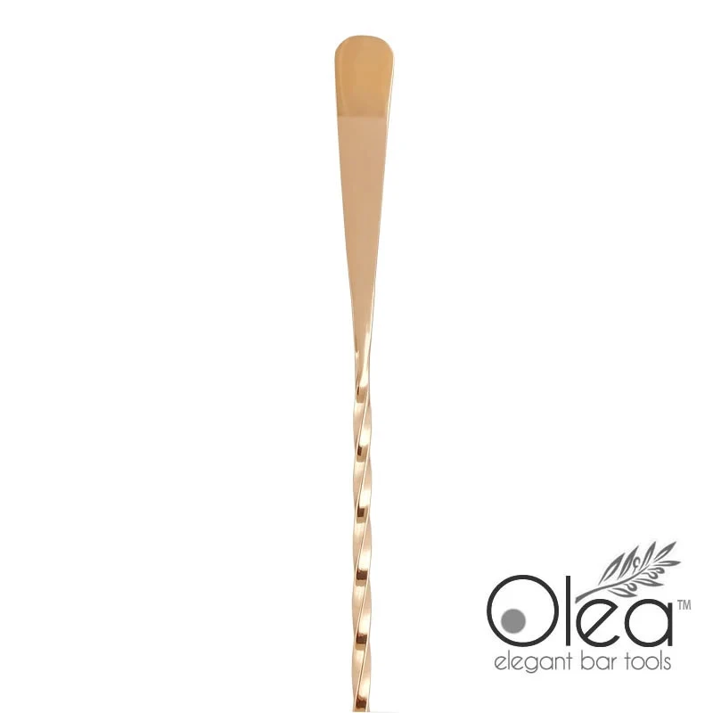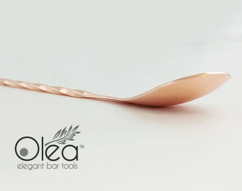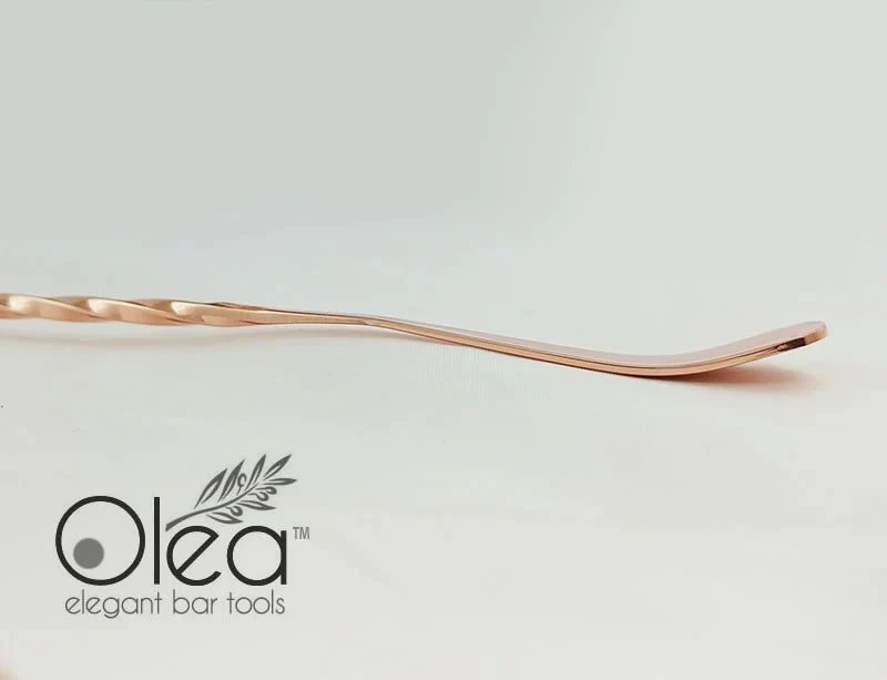 “Absolutely stunning” are the perfect words to describe this gorgeous Copper Plated “Bent Tip” Bar Spoon. One of the first editions to our line of Olea™ Elegant Bar Tools, this bar spoon is every master mixologists and professional bartenders dream bar tool. This high quality piece is constructed from a durable stainless steel material and then beautifully plated with a reflective copper finish.