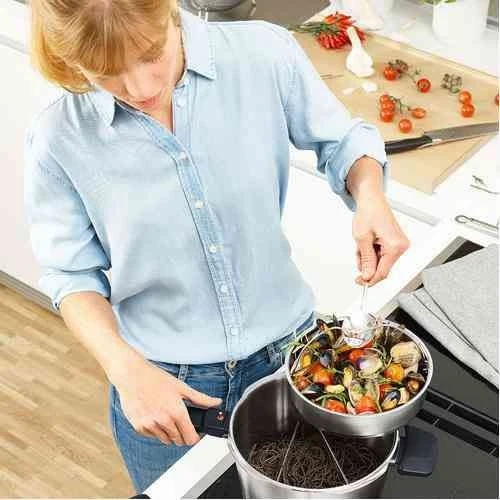 Demanding home chefs will appreciate the innovative features and four precision cooking settings that make the Vitavit® Premium stand out from other stovetop pressure cookers. Fissler has incorporated more than 65 years of experience and engineering to create this commercial-grade pressure cooker. It not only reduces cooking time by up to 70% but can also steam, sear/brown, multi-level cook, preserve, sterilize, and even bake! The four settings and unique traffic light system offer unbeaten precision and complete control of the cooking process. Once sealed, the safety systems are activated, and the pot can’t be opened unless excess pressure is released. Main body is constructed of premium 18/10 stainless steel that is durable and easy to clean.