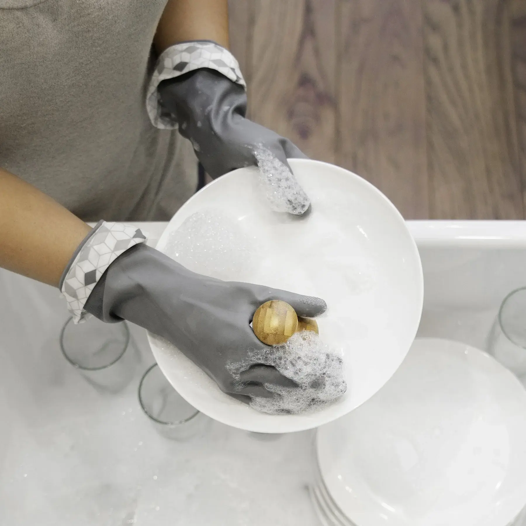 Spiff your space without your hands getting dirty. Our sleek, slip-resistant gloves combat muck while keeping you dry and out of harsh chemicals’ reach. From kitchens and baths to mudrooms and more- this sturdy pair goes the distance in style.