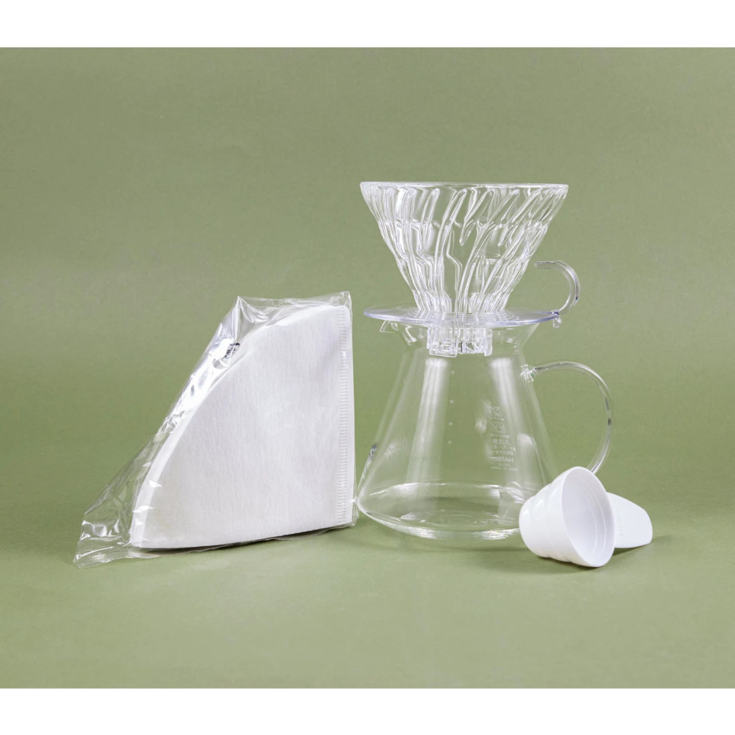 This new pour over set features clear glass and has all the basic essentials! Includes the following items: