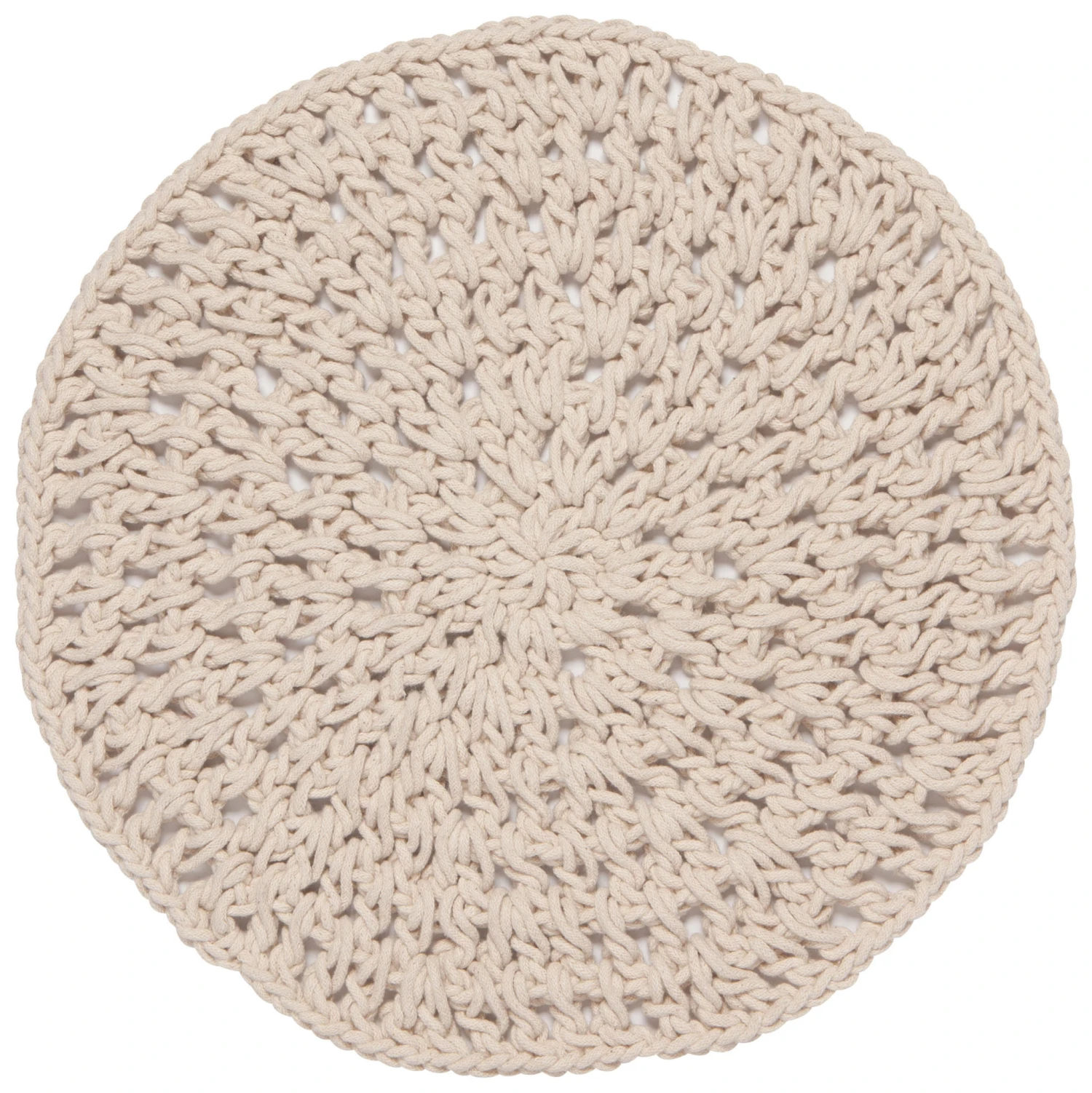 This thick handwoven placemat has a nautical look that is perfect for indoor or outdoor use. Alternatively, it can also be used as a trivet for large pots and pans.Â