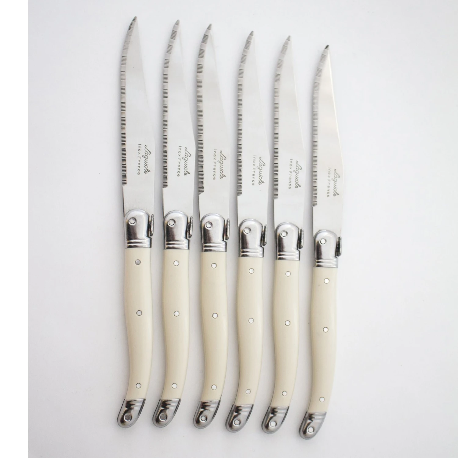 World renowned knives from the Midi-Pyrenees region of France. These stainless steel knives feature the iconic bee with natural wood, stainless steel or festively colored handles. This line is a lively addition to any dining experience.