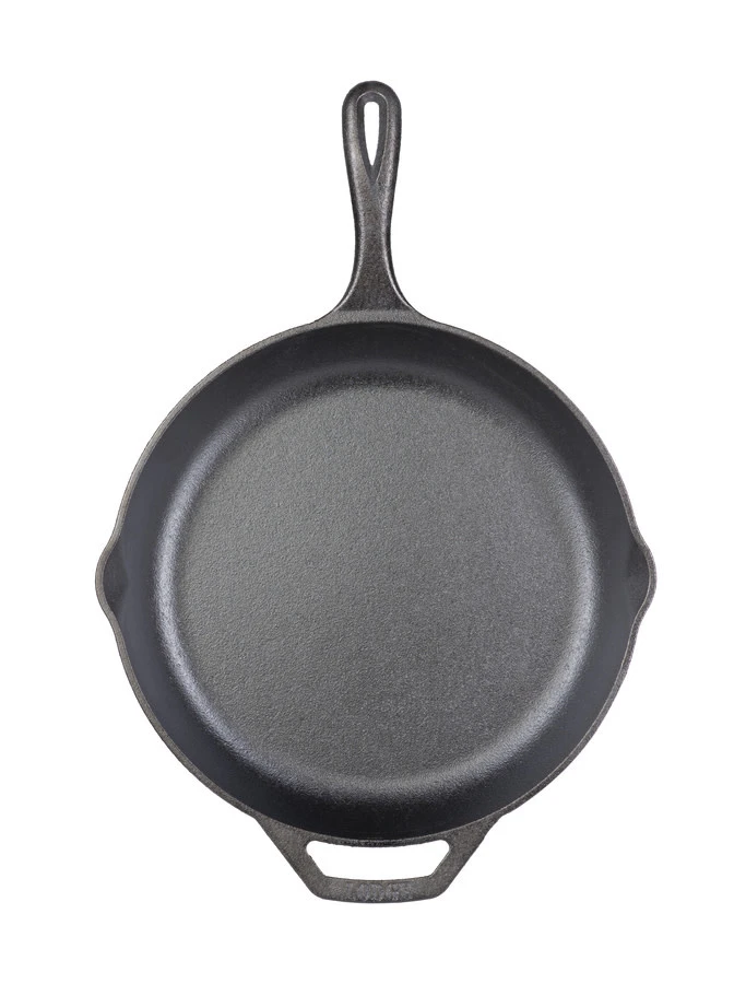 This fan-favorite size has been redesigned with chefs in mind. The elevated, comfortable main handle and assist handle on the Chef Collection 12 Inch Skillet give you great control as you maneuver around your kitchen. The generous pour spouts are made for pan sauces and gravies and the spatula-friendly sloped sidewalls make stirring a breeze. Seasoned to bring out rich flavors, this skillet is bound to become a favorite for years to come. Seasoned with 100% natural vegetable oil for an easy-release finish