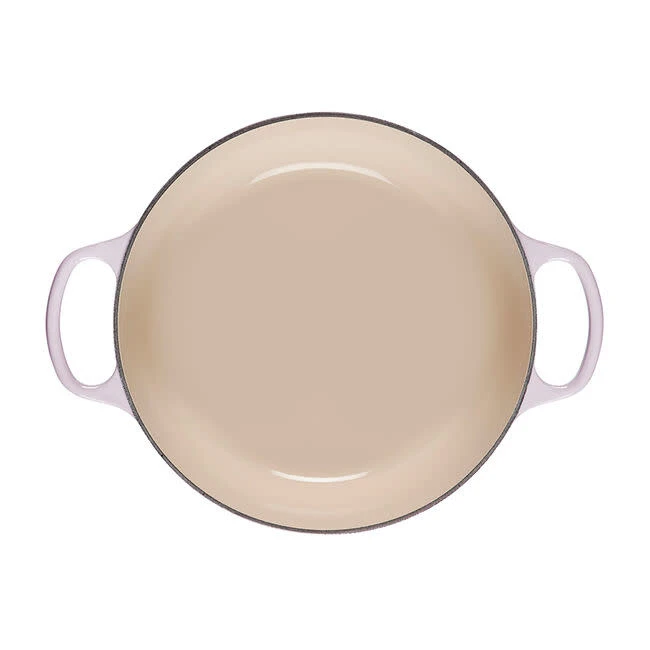 - Light colored smooth interior enamel allows easy monitoring of cooking progress