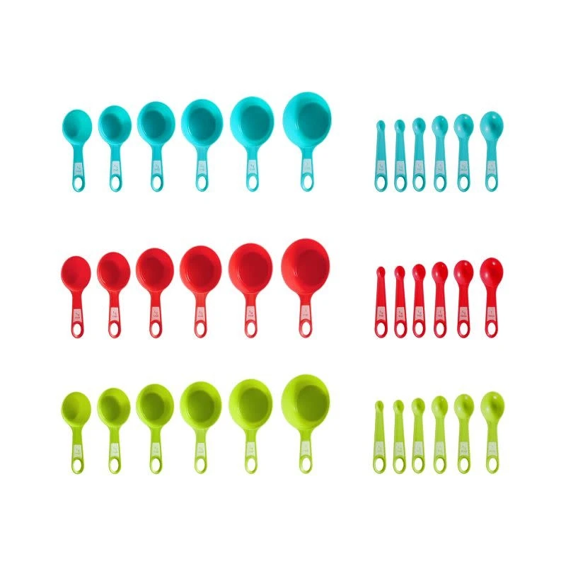 Set includes 6 measuring cups and 6 measuring spoons