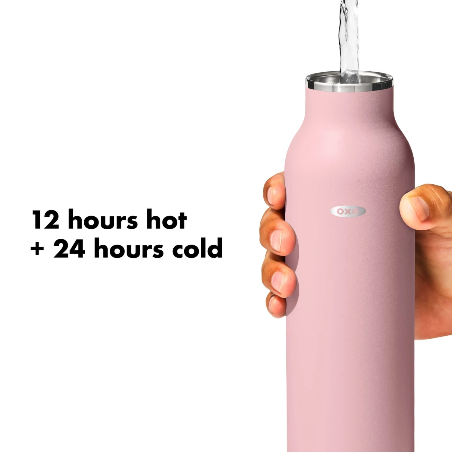 Take your drinks on the go with the OXO Strive Insulated Water Bottle (24 oz/710 mL ). The Insulated Water Bottle is sized to fit most car cup holders and features a non-slip, sweatproof coating for a comfortable grip. The leakproof lid has a silicone seal to prevent spills in bags or on the go. Stainless steel, double-wall vacuum insulation keeps drinks cold for 24 hours or hot for 12 hours. The bottle and lid are dishwasher safe. BPA free.Features Double-wall insulation keeps drinks cold for 24 hours, hot for 12 hours Leakproof lid with silicone seal helps prevent spills in bags or on the go Sweatproof coating is non-slip for a comfortable grip Sized to fit in most car cup holders Holds 24 oz/710 mL