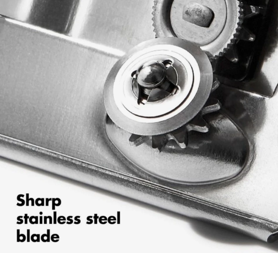 This can opener features large rubber handles for effortless opening. Sharp, stainless-steel blade. Dishwasher-safe. Made by Oxo.