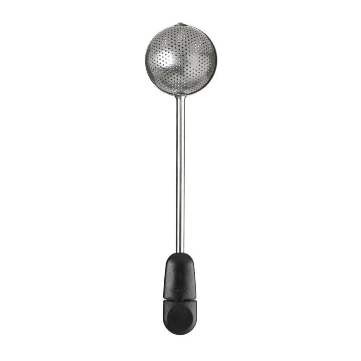 The Twisting Tea Ball makes it easy to scoop up the desired amount of loose leaf tea. The twisting feature ensure the leaves stay in the ball, simply twist the end of the handle to close. Long neck can accommodate many different sizes of mugs and cups. Spinning design makes it easy to clean.